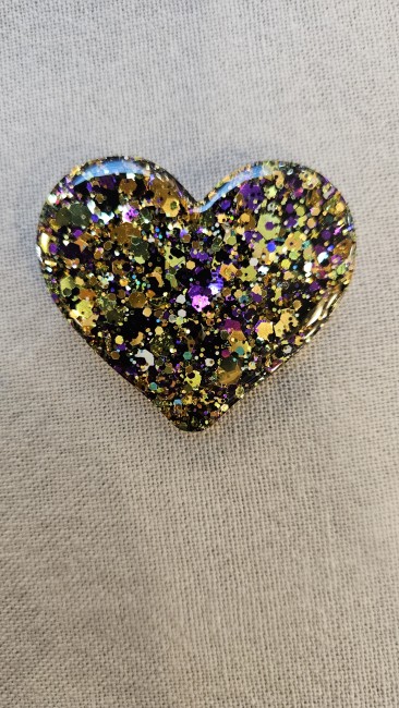 Broche coeur or violet paillettes