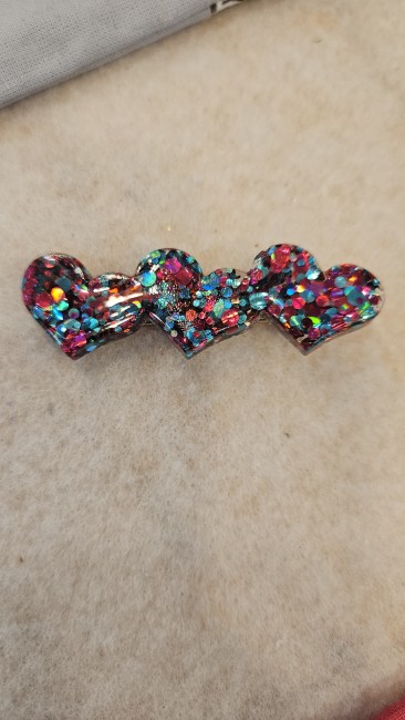 Barrette coeur rose fushia et bleu