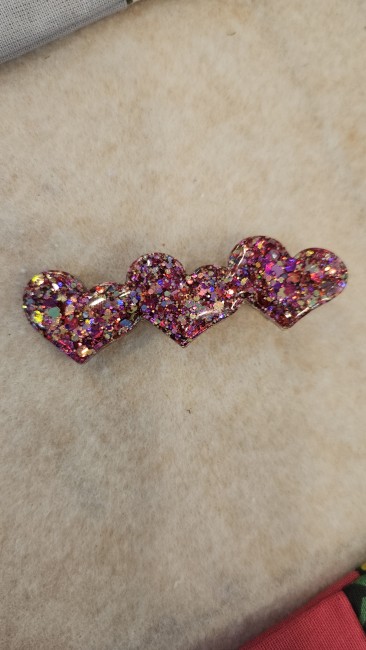 Barrette coeur rose rouge doré