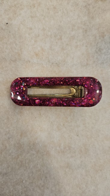Barrette resine epoxy feuilles d or fushia